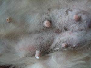 Молочные железы расположены на животе у собак. Их, обычно, 10 штук в два ряда по 5 штук. В норме, у собаки, которая не кормит щенков и не беременна, железы не должны иметь никаких утолщений, отеков, выделений и гиперемии (покраснения). У беременных животных в норме может наблюдаться небольшое набухание желез. Но если владелец замечает, что молочные железы у его питомца изменили форму, цвет, отвердели или из них появились выделения – необходимо обследовать животное в ветеринарной клинике для выяснения причины такой патологии.