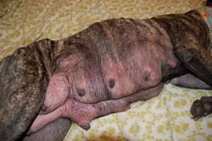 - Мастит – это инфекция молочной железы. Мастит может затрагивать только одну или несколько желез у собаки. Кроме отека может наблюдаться гиперемия железы, повышение температуры и сильная болезненность.