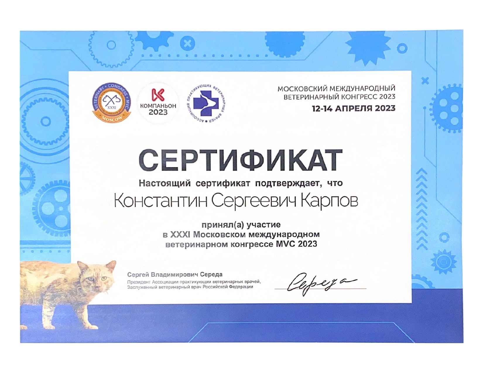 2023 год – принял участие в XXVI Международном ветеринарном конгрессе (MVC).
