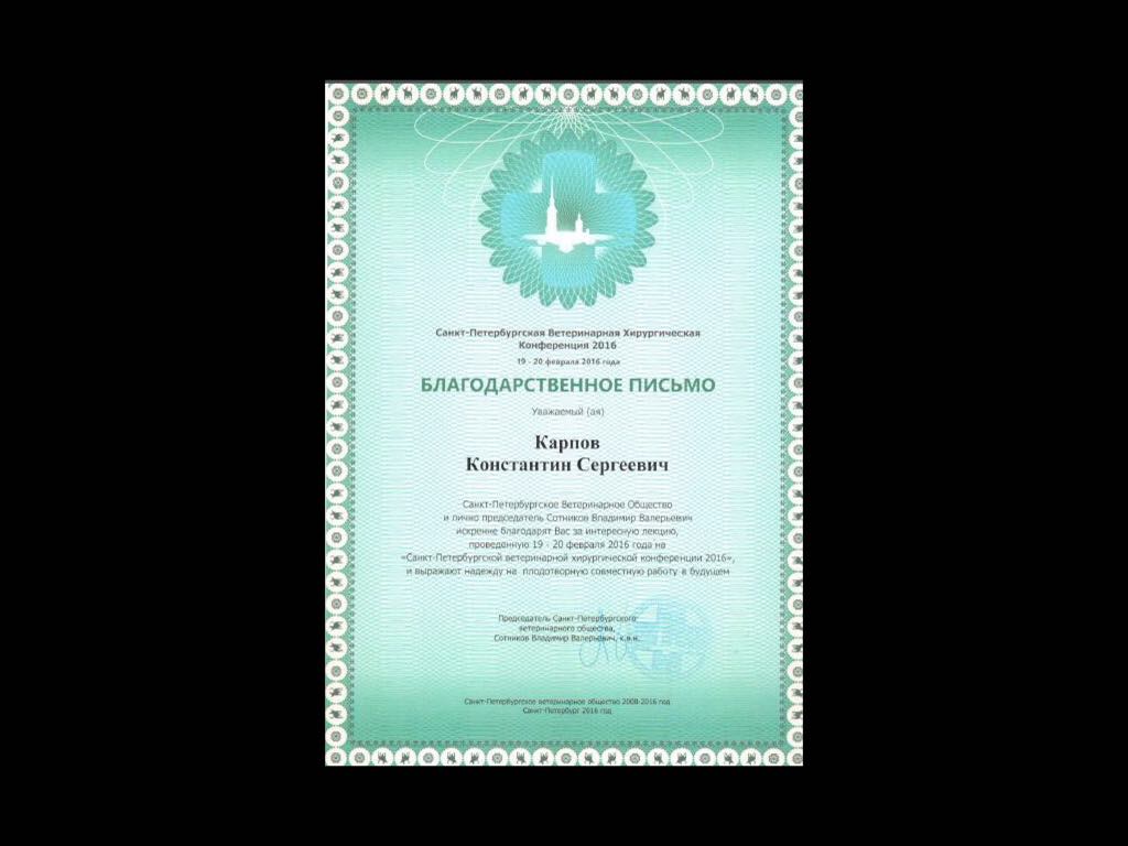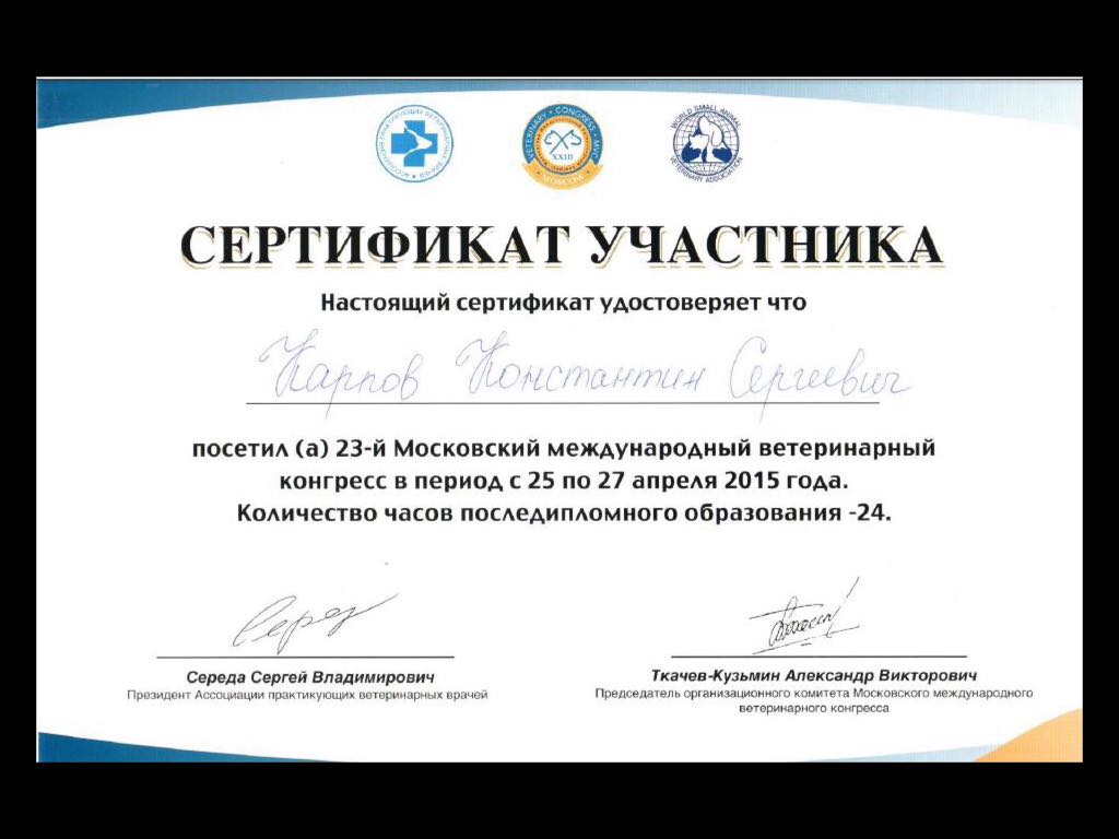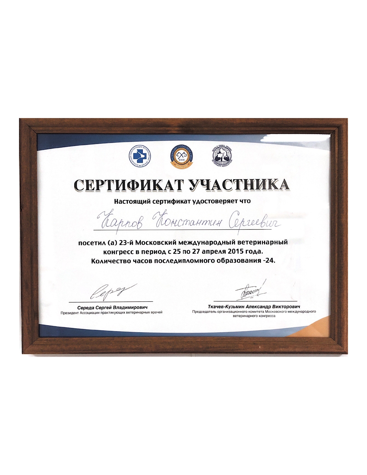 2013 год – слушатель Санкт-Петербургской ветеринарной конференции по хирургии.